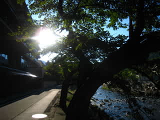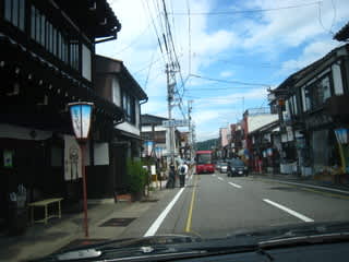 ・あつみ温泉、ホテル萬国屋前。右の建物が萬国屋です。やはり、老舗は違いました。挨拶ひとつが違いました。また行きたい旅館を見つけました。