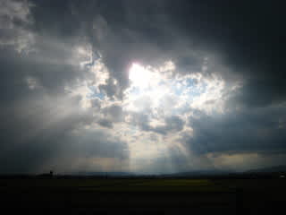・城端からの帰り。雨が上がりはじめています。富山市方面は晴れているようです。