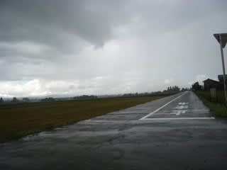 ・酒田方面に向かう国道47号線。ちらりと正面に見えるのが、最上川です。