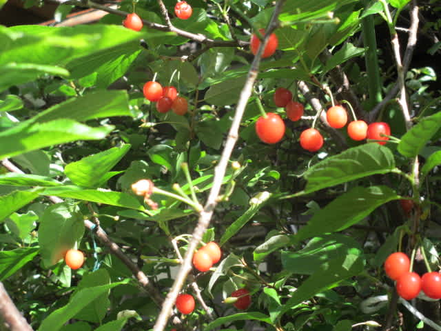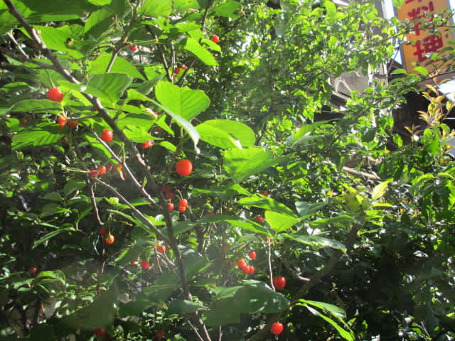 早起きは3文のトク。目の高さに、こんなサクランボの木を