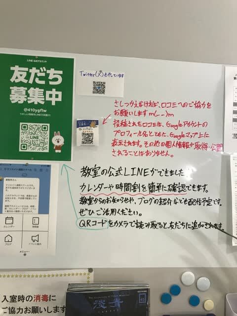 教室からのお知らせや、ブログの紹介なども配信予定です。