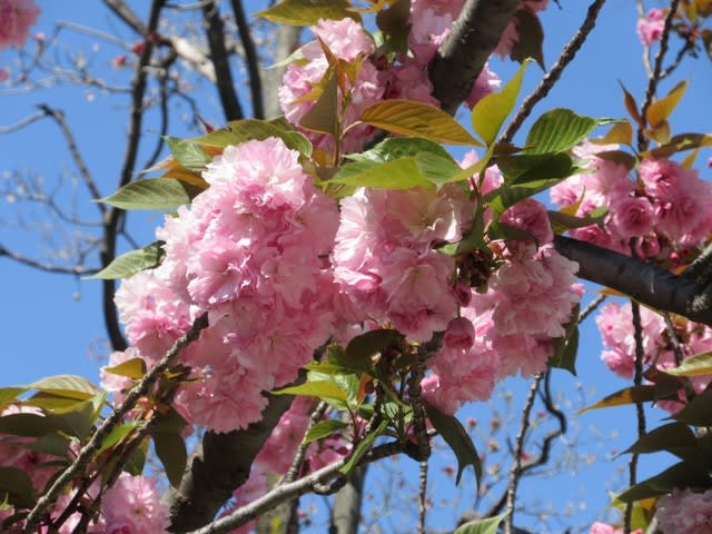 近所で見つけた八重桜や春紅葉をしばらく載せていけたらと思います。