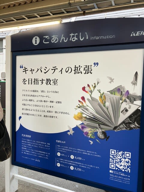 京王線駒場東大前駅プラットフォームに、4/9(火)に日付が変わった深夜、クリエイトの駅看板が設置されました。