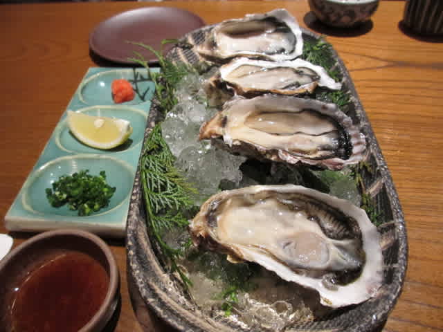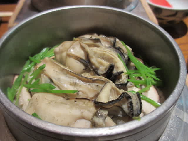釜飯を待つあいだ(30分弱)に岩牡蠣をオーダー。風邪ひきヨメが牡蠣を食べるたびに「おいひいー」。もうひと皿追加。お参りが主なのか、麻鳥が主なのか
