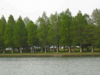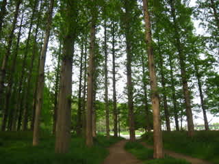 異国の雰囲気の木立が並びます。メタセコイアみたいです。