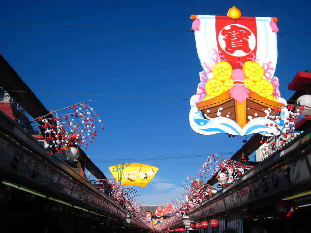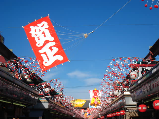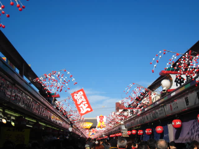 ・仲見世通りも天空もお正月です。でも、弾けていないのが好みです。